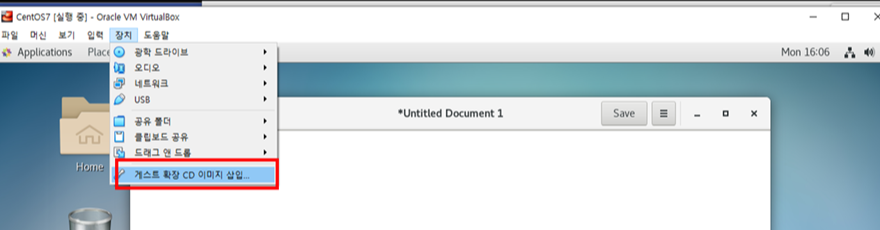 4. VM Ware창 위 장치에서 게스트 확장 CD 이미지 삽입 클릭