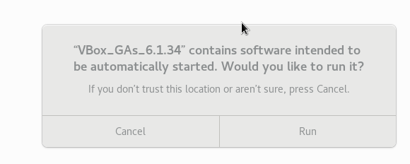 게스트 확장 CD를 클릭하면 Centos7 기준 다음과 같은 창이 나타나는데, Run을 클릭합니다.