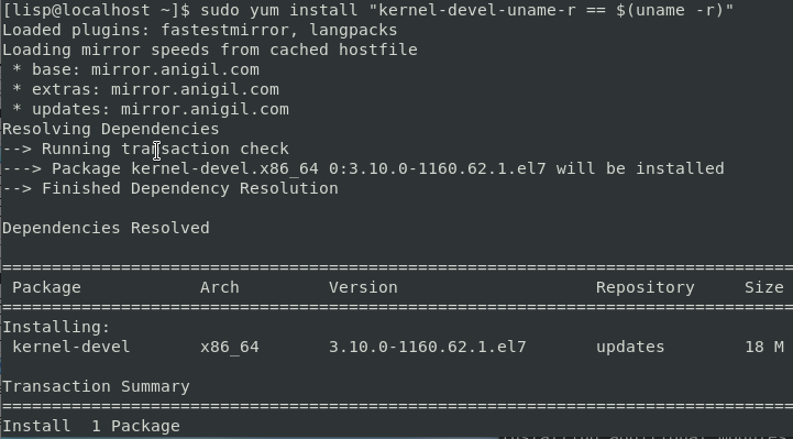 sudo yum install "kernel-devel-uname-r == $(uname -r)"