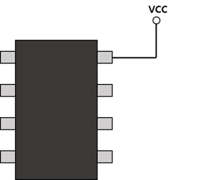 다음과 같이 연결할 경우 VCC전압이 불안정 하더라도 캐패시터에 충전된 전하가 전원 변화에 따라 방충전을 반복하기 때문에 IC에 입력되는 전원은 균등해지게 됩니다.