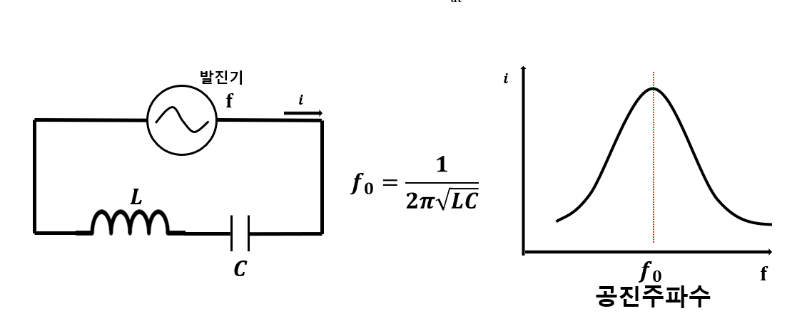 다음은 LC를 직렬로 배치하여 구성한 Band Pass Filter와 공진주파수 수식입니다.