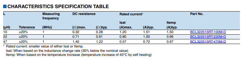 (참고 : 인덕터의 종류[파워인턱터 etc.)에 따라 데이터 시트에 표기된 주요 spec이 다를 수 있습니다.)