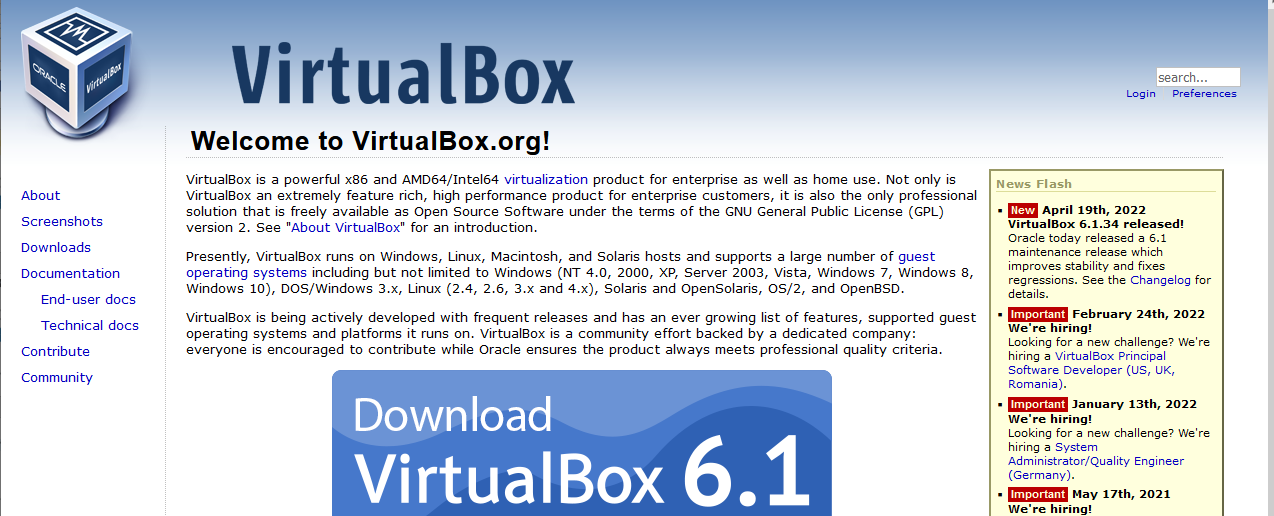 Welcome to VirtualBox.org! News Flash New April 19th, 2022VirtualBox 6.1.34 released! Oracle today released a 6.1 maintenance release which improves stability and fixes regressions. See the Changelog for details. Important February 24th, 2022We're hiring!