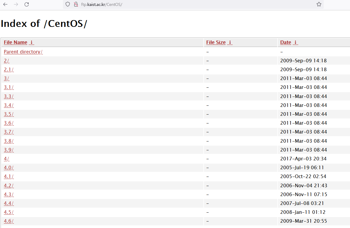우리는 iso가 필요하기 때문에 위 링크에 들어가셔서, Download->Geographical mirrors(좌측)->Mirror List -> Korea(위치가 다르다면 해당되는 국가)를 검색한 후, 원하는 링크에 들어가서 iso를 다운로드하시면 됩니다. 22년 5월 10일 시점으로 Korea에는 5개 Mirror링크가 있습니다. 예시로 Kaist의 Mirror 링크에 접속하여 iso를 다운로드하도록 하겠습니다.